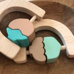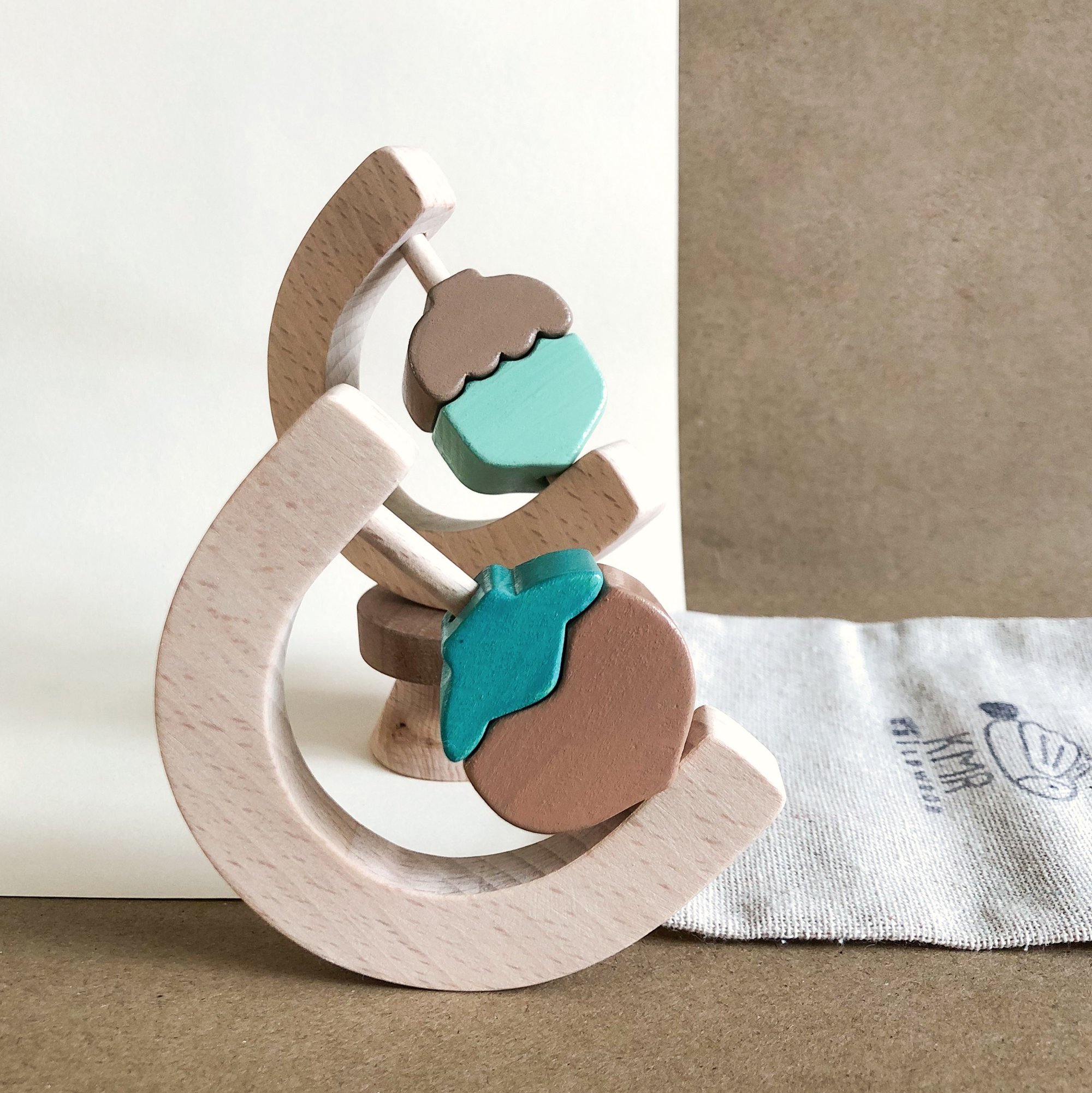 Doux et minimaliste, un jouet en bois simple et naturel, facile à attraper pour les petites mains. Il est composé de deux modules qui bougent, tournent et s'assemblent.