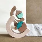 Soft and minimalist, a simple and natural wooden toy, easy for little hands to grasp. It is composed of two modules that move, rotate, and assemble.