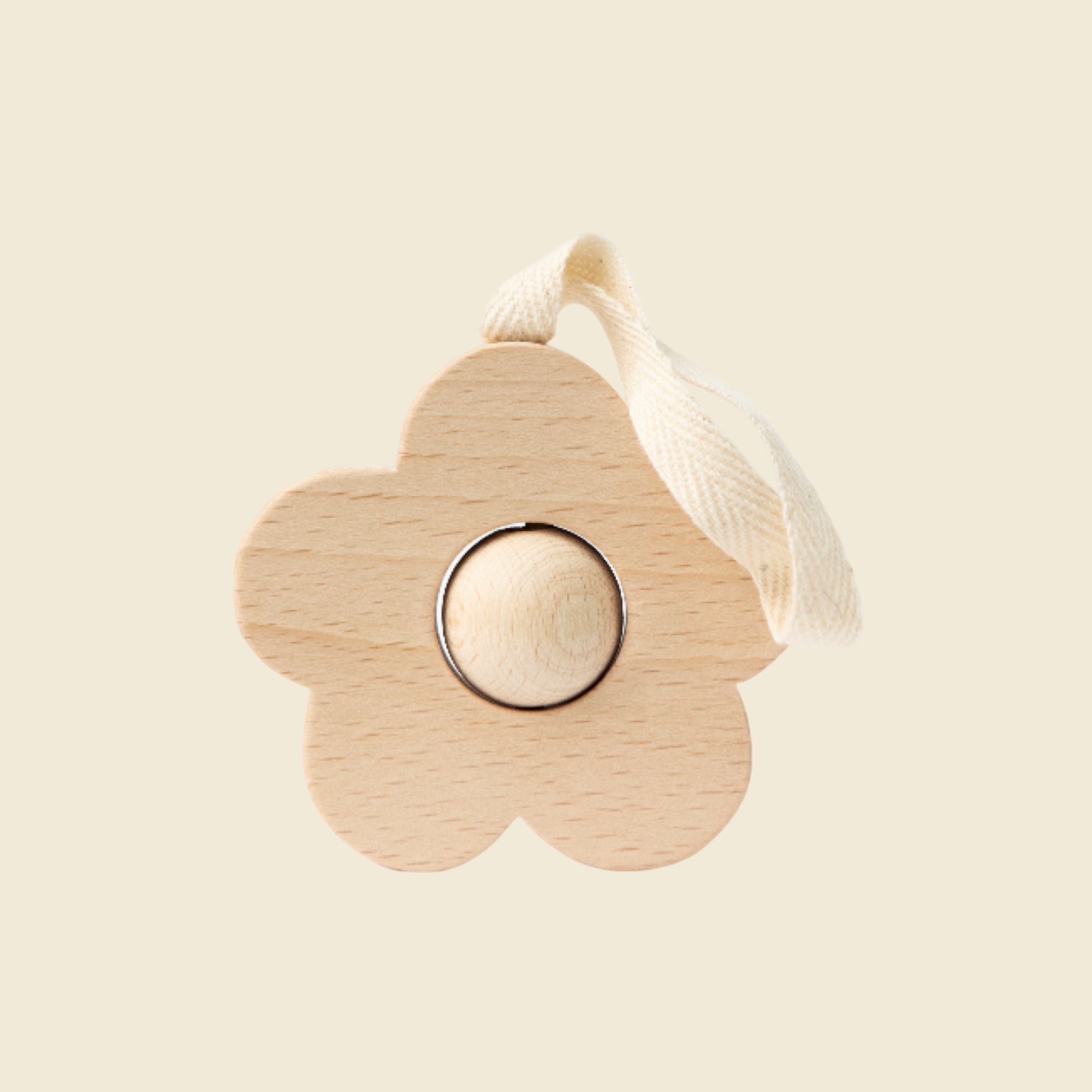 Une fleur à accrocher partout, et à emmener partout. Facile à attraper et à manipuler, avec une boule mobile au centre stimulant la motricité fine. Une fleur en bois qui peut être porté à la bouche pour soulager les gencives.
