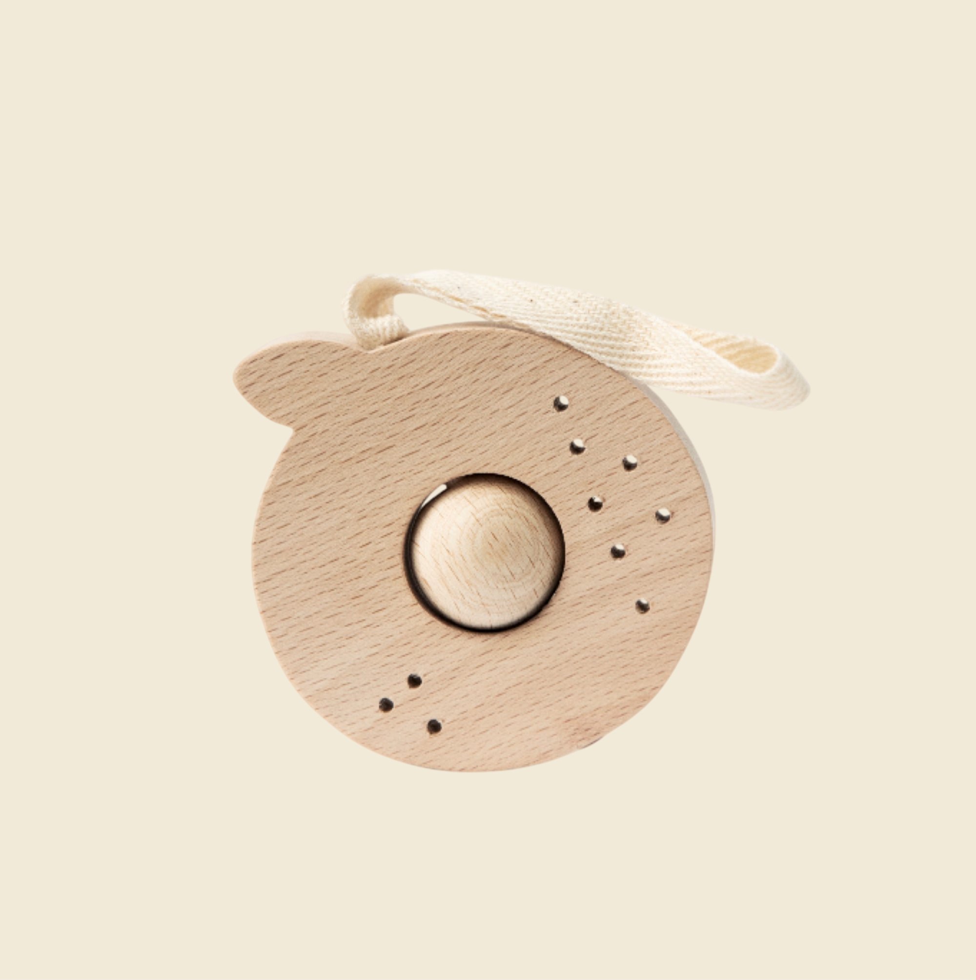 A raw wooden toy, without varnish or products, to be offered from birth. An object that will stand the test of time, whether in small hands or as a decoration. To play with poetry and simplicity, and slowly awaken to the world.